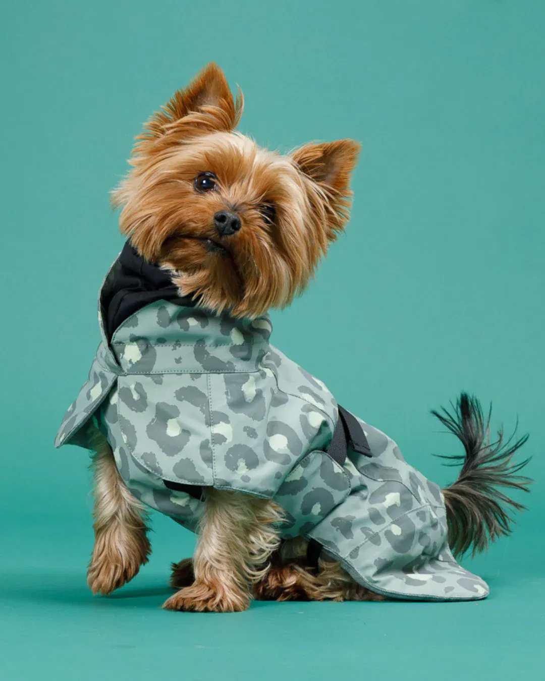 PAIKKA reflexná zimná bunda pre psov v zelenom leopardom odtieni