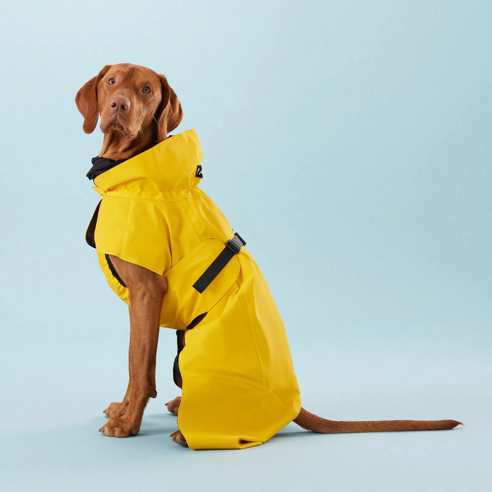 Najlepší pršiplášť pre psov; kabát, ktorý je úplne reflexný, nepremokavý, s otvorom na postroj so zipsom a rozparkom pri chvoste, aby neobmedzoval pohyb chvosta, čo môže negatívne ovplyvniť a zabrániť psovi v komunikácii s inými psami pri nosení. Tento pršiplášť pre psov je zároveň navrhnutý tak, aby úplne pokrýval hrudný kôš s nastaviteľným pásom na zapínanie, zadný strih siaha takmer po kolená, aby pokryl celý kožuch a stehná aj počas pohybu.